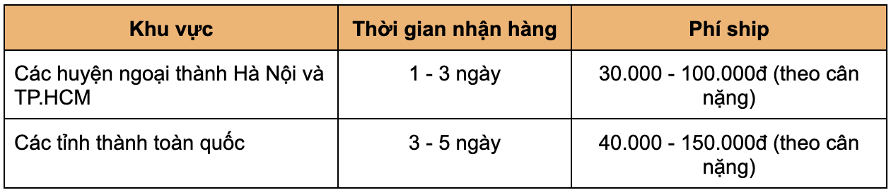 - Phí giao hàng nhanh từ 35.000đ - 60.000đ/ đơn