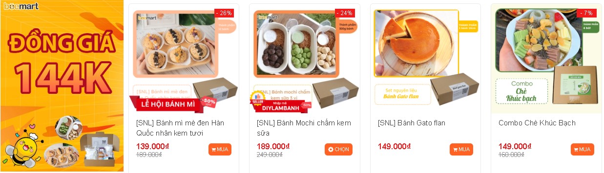 Bạn muốn làm các món bánh kem tươi, bánh lạnh? Hay muốn tặng người thân bạn bè món bánh mà họ yêu thích thì phải làm sao? Để Bee giúp bạn với deal cực hời nhé! Tất cả các set nguyên liệu chỉ có 144K thôi, giúp bạn thỏa đam mê!