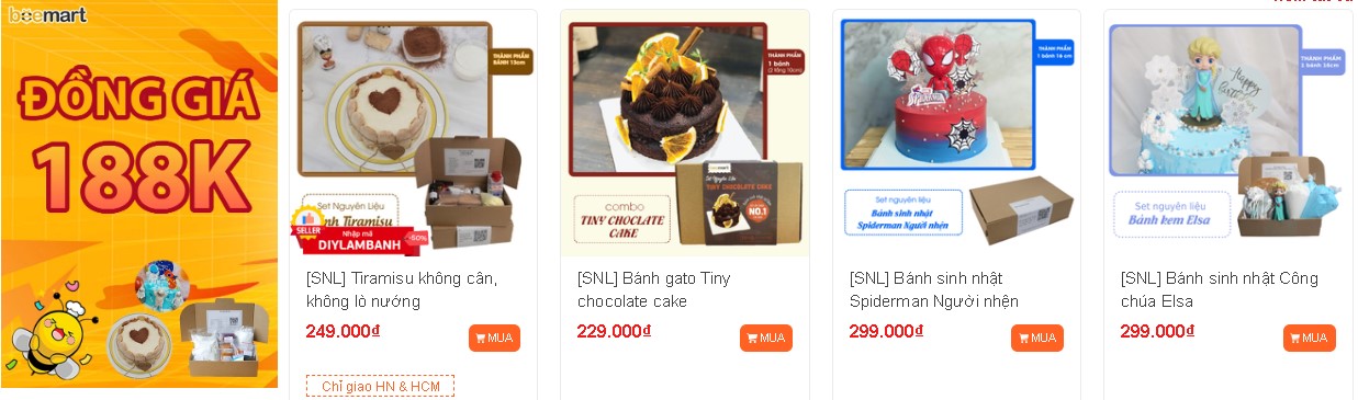 Deal Sale cực đã với giá cực sốc, các set nguyên liệu làm bánh sinh nhật đẹp mắt đồng giá 188K. Nhanh tay lựa ngay món bạn yêu thích và săn ưu đãi cùng Beemart nha!