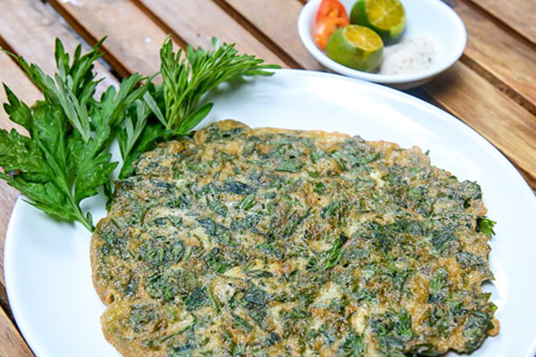 Ngồi xuống đây làm đôi ly trà đá cùng đĩa trứng ngải cứu thơm lừng, chấm muối vắt chút quất cùng tương ớt đánh tan mới ngon làm sao. Trứng ngải cứu cực kỳ đơn giản, chúng ta có thể bắt gặp những gánh hàng rong bán trứng với đôi quang gánh cùng 2 cái thúng xung quanh là các ghế nhựa nhấp. Đổ 2 quả trứng gà công nghiệp tách vỏ đánh tan cùng với chút ngải cứu cắt nhỏ cộng thêm chút muối và hạt nêm mới ngon làm sao. Ăn trứng ngải cứu phải ăn nóng mới ngon, đặc biệt phải ăn vào những buổi chiều thì hết ý. Món ăn vặt vỉa hè này chỉ có giá khoảng 14000đ- 17000đ/2 quả trứng.