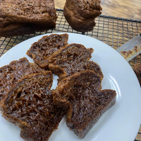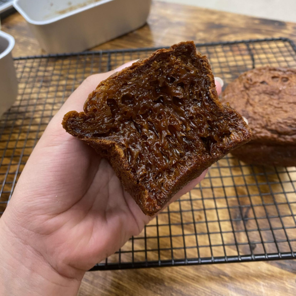 10. Bánh nướng chín bề mặt khô ráo. Tắt lò hé cửa lò 5 - 7p rồi úp bánh lên rack. Gỡ bánh ra. Bánh đạt sẽ róc khuôn lấy bánh dễ dàng.