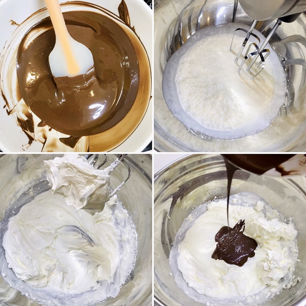 LƯU Ý: Nếu muốn khúc cây có màu nâu sậm hơn thì tăng lượng socola đổ vào kem whipping hoặc ngược lại nếu muốn nhạt màu thì đổ ít lại.