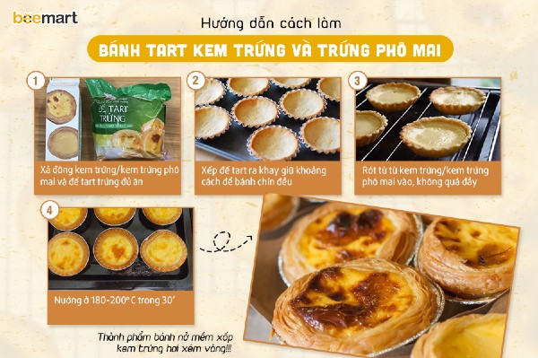 Với combo đế bánh tart trứng và kem trứng phô mai của nhà Bee. các mẹ có thể tự làm những chiếc bánh tart cực kỳ hấp dẫn và tiện lợi, đơn giản nhưng đảm bảo ngon như ngoài hàng.