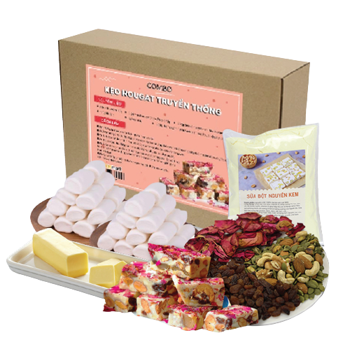 SET NGUYÊN LIỆU LÀM KẸO NOUGAT SẼ LÀM ĐƯỢC TỪ 20-60 VIÊN