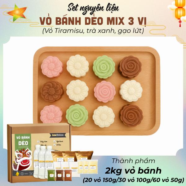 Với 3 phiên bản vỏ bánh đã được trộn sẵn theo công thức độc quyền, bạn sẽ dễ dàng tạo ra những chiếc bánh dẻo đẹp mắt, thơm ngon và độc đáo ngay tại nhà mà không cần kinh nghiệm. Mỗi set vỏ bánh có khối lượng 700g, vừa đủ để bạn làm một mẻ bánh dẻo, thỏa sức sáng tạo với các loại nhân khác nhau.
