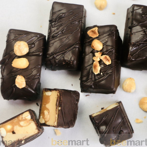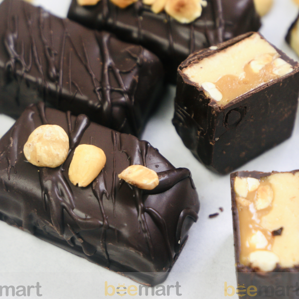 Nguyên liệu làm socola snicker khá đơn giản, gồm socola đen, đậu phộng rang, caramel, bơ,... tuy nhiên nhiều người vẫn bắt khoăn không biết làm sao cho lớp nhân được giòn rụm? Làm sao để lớp phủ socola được mịn và không ngọt gắt? Để Beemart hướng dẫn bạn cách làm socola snicker đúng vị nhất bằng combo socola snicker nhé!