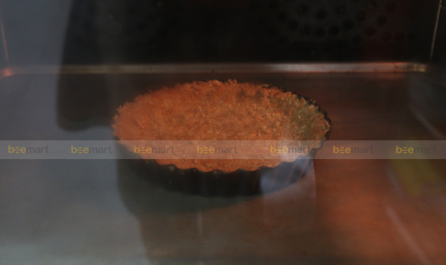 - Lấy đế bánh trong tủ lạnh ra, nướng đế bánh ở 170 độ trong 10 phút