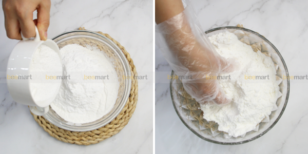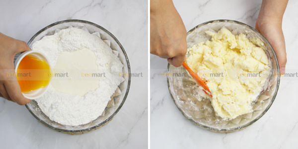 Bước 1: Trộn và nhồi bột vỏ bánh