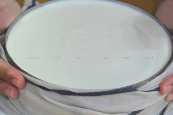 - Nhẹ nhàng gỡ màng bọc thực phẩm khỏi đế bánh
