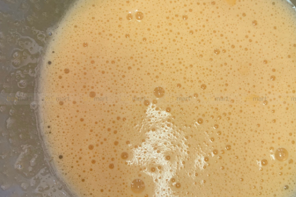 - Sau khi hỗn hợp lòng đỏ đạt bạn cho vào tô lòng đỏ 30ml dầu ăn + 20ml sữa tươi rồi khuấy đều