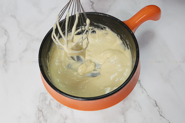 Bước 6: Trộn hỗn hợp kem tươi và kem trứng