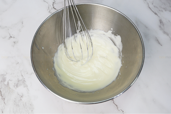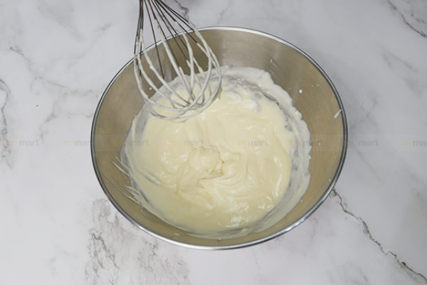 - Bạn chỉ cần đánh kem tươi đến khi kem có vân nổi lên, lưu ý không đánh bông cứng vì sẽ làm kem trứng bị lợn cợn.