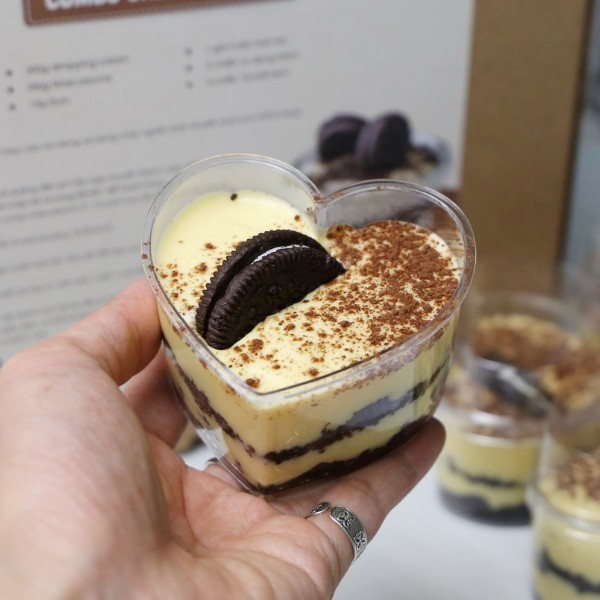 Bên cạnh đấy, các bạn nên sử dụng bột cà phê đen hơn là cà phê sữa để bánh chuẩn hương vị Ý hơn. Với mỗi công thức sẽ là được 5 chiếc nhỏ đựng trong ly nhựa hình tim vô cùng đáng yêu, thích hợp để mang người yêu, người thân trong gia đình hoặc bạn bè nhé!