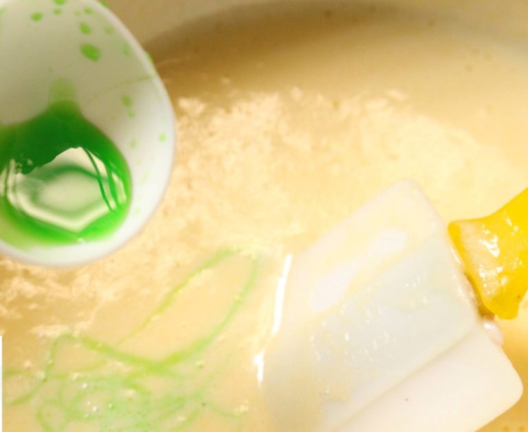 Bước 10: Cho 1/2 kem tươi đã đánh bông vào phần hỗn hợp bạc hà ở trên, dùng Spatula hất từ dưới hất lên trên, nhẹ nhàng từng chút một, dần dần sẽ hòa quyện. Tiếp tục với 1/2 còn lại nhé.