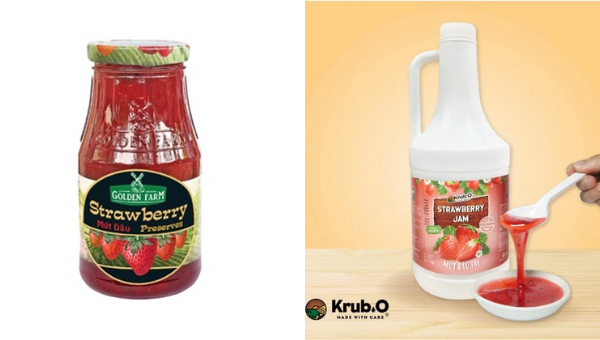 Nếu bạn không có thời gian tự làm mứt dâu tại nhà thì hoàn toàn có thể sử dụng những loại mứt dâu có sẵn trên thị trường. Tuy nhiên hãy lựa chọn những thương hiệu uy tin như Golden Farm, Krub.O để đảm bảo chất lượng của thành phẩm nhé!