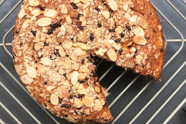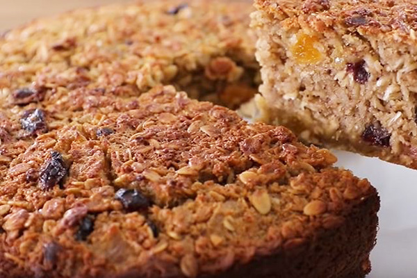 6. Lấy bánh bột yến mạch ra khỏi lò nướng và để nguội trên giá trong 10 phút, sau đó lấy ra khỏi khuôn và để nguội hoàn toàn.