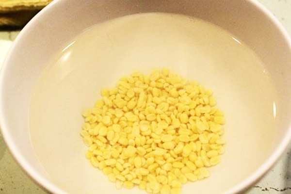 Bước 1: Đỗ xanh vo sạch, cho vào bát ngâm nước 2 tiếng cho nở mềm rồi cho vào nồi nấu chín như nấu cơm.