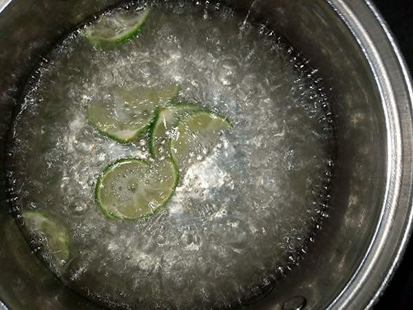 Bạn cho đường, nước vào nồi bật bếp đun sôi, sau đó hạ lửa nhỏ và nấu thêm 3-4 phút. Vắt nước cốt chanh vào, đun sôi trở lại đến khi nước đường có dạng sệt thì tắt bếp.