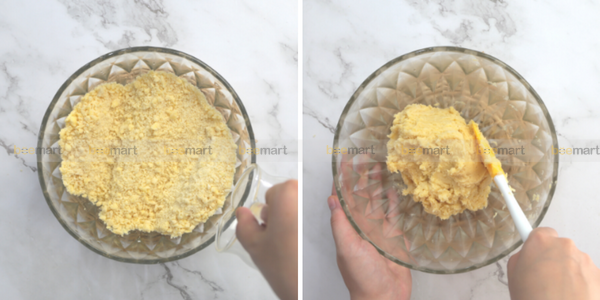 - Có thể sử dụng dao hoặc miếng cắt bột để tán nhỏ bơ, giúp bơ hòa quyện với bột.