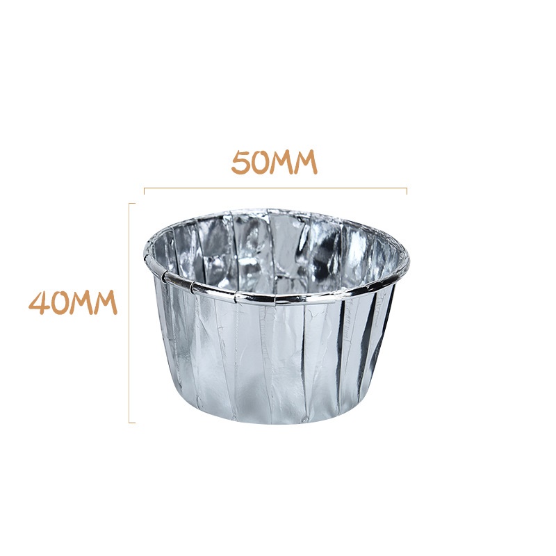 – Sản phẩm cup giấy màu nhũ bạc đơn giản, sử dụng một lần, chất liệu giấy tốt, không mục, không bị nát khi nướng và dùng được trong lò nướng