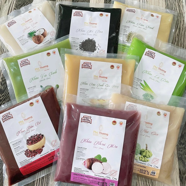 Các vị nhân bán chạy nhất với thương hiệu nhân bánh trung thu Phú Thương gồm vị đậu xanh, đậu đỏ, khoai môn, lá dứa, sữa dừa, hạt sen, trà xanh, chanh dây,...