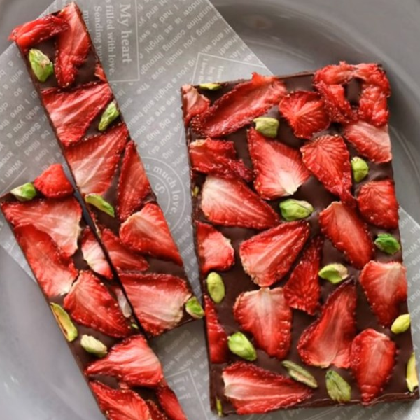 - Dâu tây sấy dẻo có thể dùng để làm kẹo Nougat, kẹo bông tuyết đón Tết, trang trí các món bánh, ăn vặt healthy, làm socola bark,...