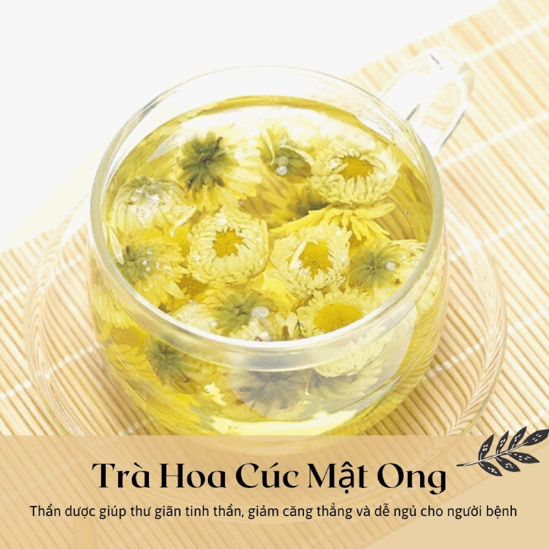 Thêm một loại trà được liệt kê vào danh sách đồ uống dành cho F0 đó là trà hoa cúc mật ong. Trà hoa cúc là một loại trà thảo mộc có thành phần chính là hoa cúc khô. Trà hoa cúc có vị đắng, cay, tính mát, tác dụng nhiệt, giúp giải độc cho cơ thể. Khi kết hợp với mật ong sẽ trở thành "loại thuốc quý" mang đến nhiều công dụng tuyệt vời cho sức khỏe như: an thần, giải nhiệt, mát gan,...