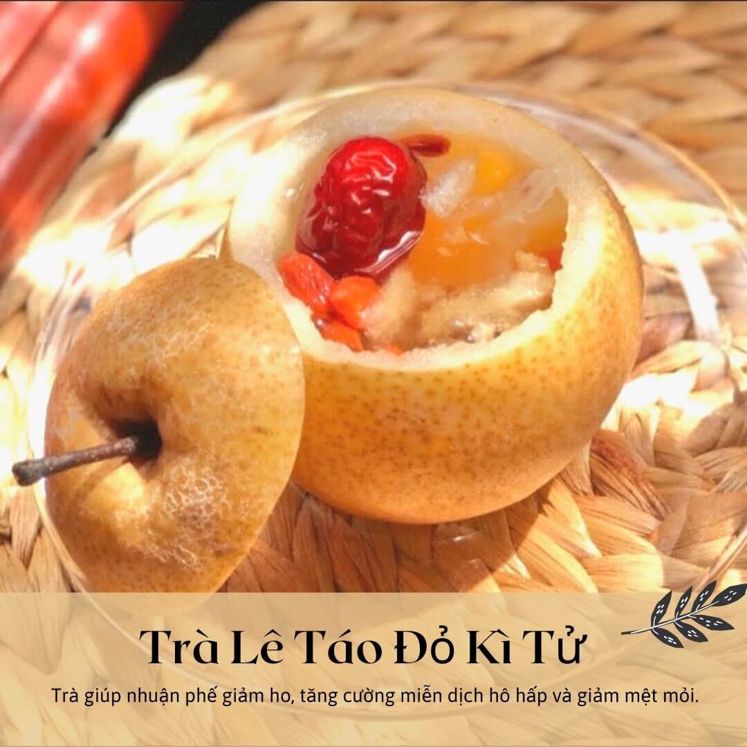 Công thức cuối cùng trong menu "đồ uống dành cho F0" mà Beemart muốn giới thiệu cho bạn ngày hôm nay đó chính là Trà lê táo đỏ kỉ tử. Đây là thức uống giúp nhuận phế giảm ho, tăng cường miễn dịch cho cơ thể và giúp giảm mệt mỏi, thích hợp dùng những khi giao mùa và bổ trợ sức khỏe cho F0.