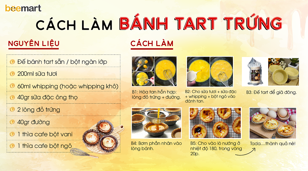 - Công thức kem trứng trên làm ra ~400g hỗn hợp, bạn có thể dùng cho ~15- 20 đế bánh