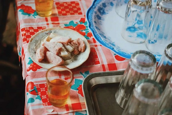 Đến với Làng cổ Đường Lâm bạn còn được thưởng thức đặc sản chè lam nơi đây.