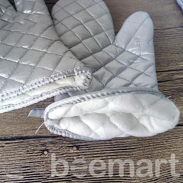 - Găng tay bạc được chần hình mắt cáo có tác dụng giảm bớt độ trơn trượt khi sử dụng dụng cụ nấu ăn đang nóng và giúp bạn lấy khay bánh hay lấy đĩa từ nồi hấp ra dễ dàng và an toàn hơn.