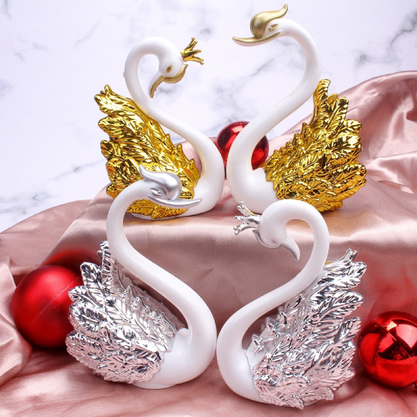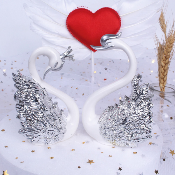 Đôi thiên nga trang trí màu bạc được làm bằng nhựa PVC và kim loại cao cấp tạo cảm giác chắc chắn, dễ dàng trang trí.