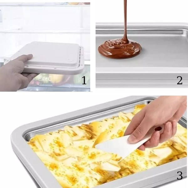 Bạn chỉ cần đổ các nguyên liệu cần làm vào khay đựng, sau đó khuấy đều và tán nhỏ, chờ 5 - 8 phút để kem được tạo thành. Có thêm trái cây, các loại hạt hoặc vụn sô cô la để tăng thêm hương vị hấp dẫn cho món kem. Đảm bảo rằng bạn sẽ không tìm được hương vị kem hấp dẫn như thế này ở ngoài hàng đâu.
