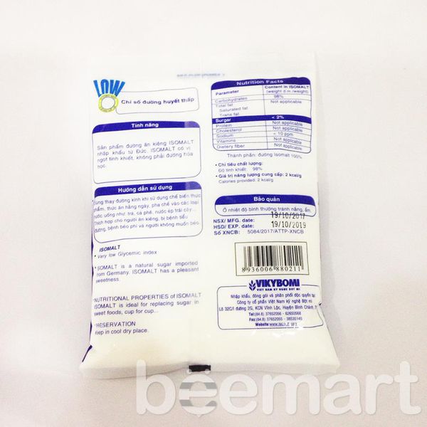 Đường ăn kiêng Isomalt không phải đường hóa học, mà là sản phẩm tự nhiên được chế biến hoàn toàn từ củ cải đường, có năng lượng thấp (2 kcal/g), vị ngọt tinh khiết như đường bình thường, khả năng tái tạo khoáng cho răng, không làm ảnh hưởng đến đường huyết, độ làm ngọt chỉ bằng một nửa đường bình thường chúng ta vẫn dùng hằng ngày.