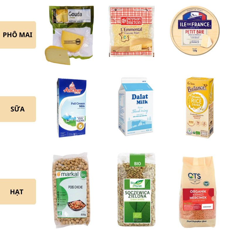 - Sữa tươi ( Dalat Milk, Avonmore, 4Care Balance, Anchor, West Gold)