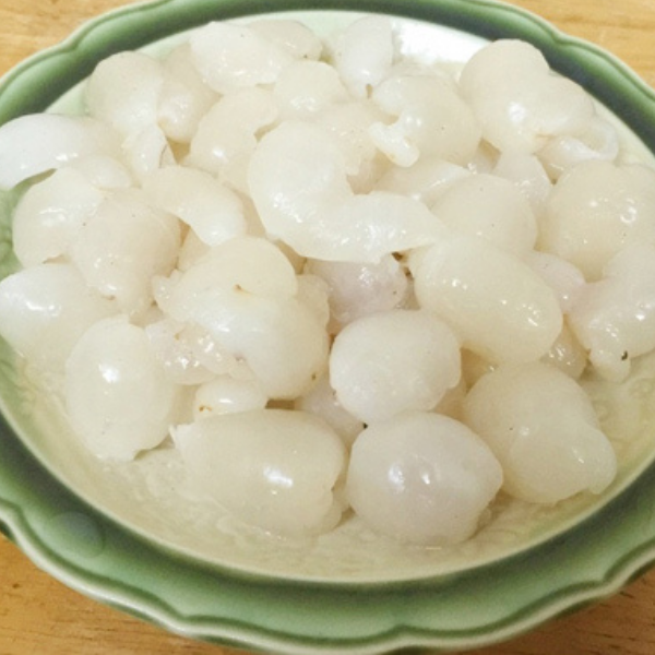 Vải bóc vỏ, bỏ hạt lấy 2-3 phần thị vải cắt nhỏ để làm topping