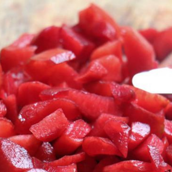 Mận bỏ hạt cắt thành nhỏ 2-3 trái hình hạt lựu dùng làm topping