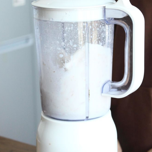 Cho phần thịt vải còn lại vào máy xay nhuyễn. Sau đó lọc lấy 100ml nước vải