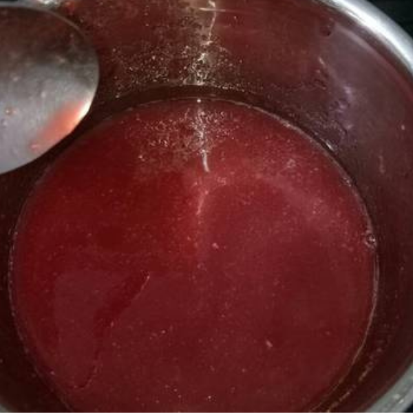 Ướp mận với 70g đường trong khoảng 20 phút. Sau đó cho mận lên bếp đun đến khi tan đường. Cuối cùng cho vào máy xay nhuyễn rồi lọc lấy 270ml nước mận.