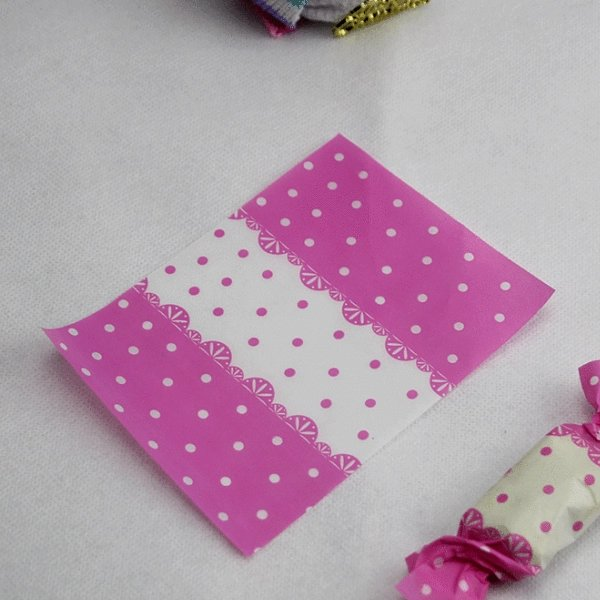 Giấy gói kẹo chấm bi hồng trắng được làm bằng chất liệu nilong, không chưa chất độc hại nên bạn có thể yên tâm khi sử dụng nhé!