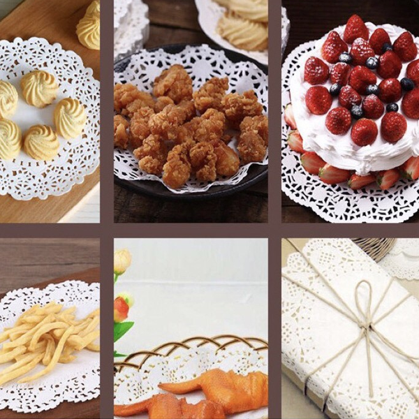 - Giấy ren lót bánh tròn 8.5 inch (100 tờ) được làm từ giấy bột gỗ, an toàn, thân thiện với môi trường