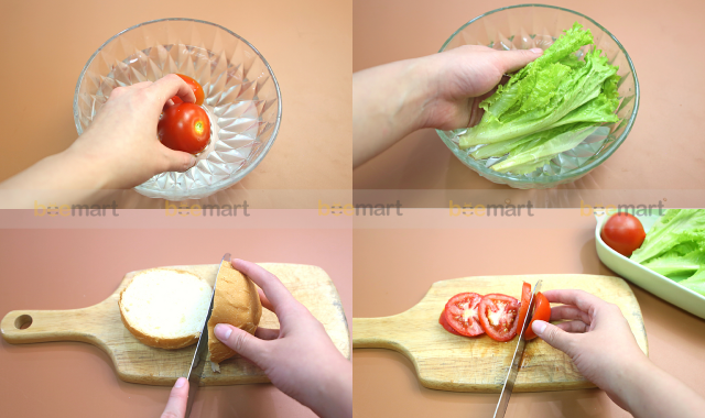 - Rửa sạch cà chua, rau xà lách rồi để ráo