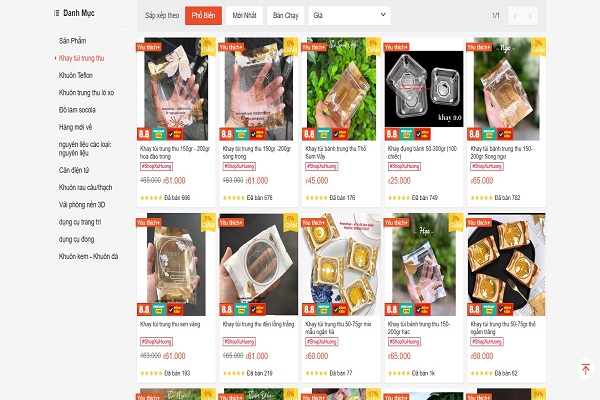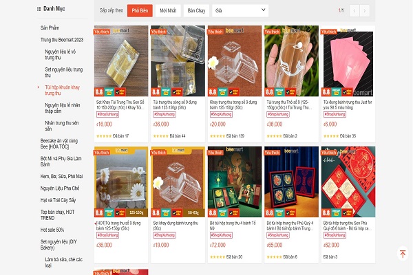 Một vài thương hiệu cung cấp nguyên liệu làm bánh và túi hộp trung thu qua kênh Shopee:
