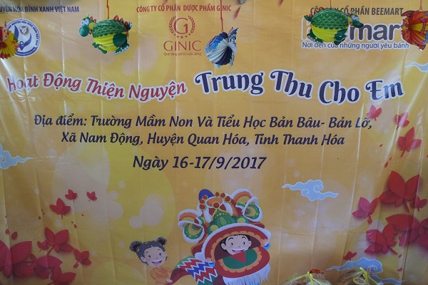2. Ngày 16-17/09/2017, “Trung Thu Cho Em” - Trường Mầm non và Tiểu học Bản Lâu-Bản Lỡ, xã Nam Động, Huyện Quan Hóa, Tỉnh Thanh Hóa.