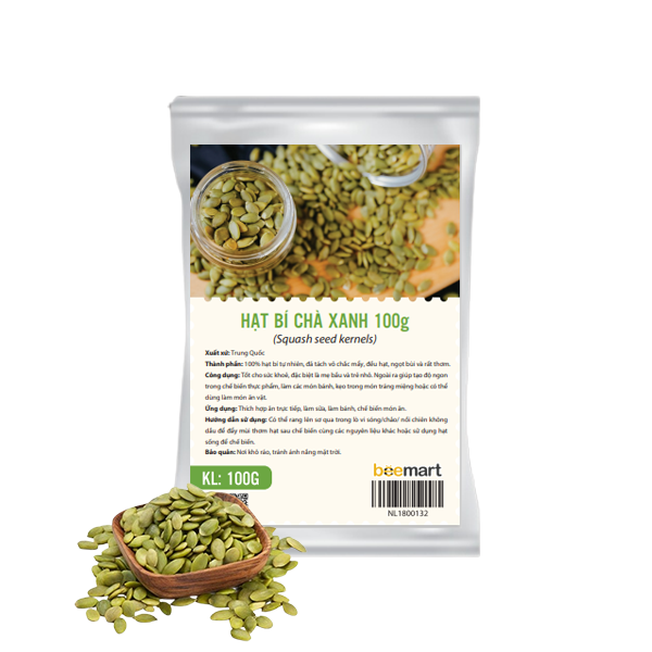- Hạt bí chà xanh 100g là một nguyên liệu không thể thiếu để làm ra nhân bánh Trung thu thập cẩm thơm ngon tròn vị cho ngày lễ đoàn viên sắp tới.