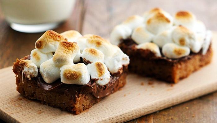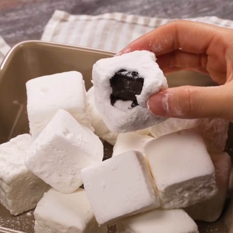- Kẹo xốp Marshmallow kẹp chocolate: Kẹp một miếng chocolate với kẹo marshmallow nướng chảy bằng hai miếng bánh xốp sau đó ép chúng lại với nhau cho dính sẽ tạo nên một phiên bản tương tự như bánh Chocopie. Hãy thử tưởng tượng vị đăng đắng của chocolate hòa quyện hoàn hảo với vị ngọt dịu, dẻo mềm của Marshmallow và tan dần trong miệng!