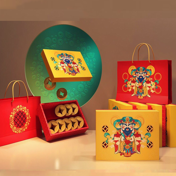 Lấy tông màu đỏ và vàng làm chủ đạo cùng hình ảnh ông thần tài may mắn, hộp không chỉ mang không khí lễ hội mà còn như một lời chúc tài lộc nhân dịp năm mới. Vừa đẹp mắt lại mang nhiều ý nghĩa chắc hẳn đây sẽ là một sự lựa chọn hoàn hảo cho hộp quà tết 2022 của gia đình bạn đó!