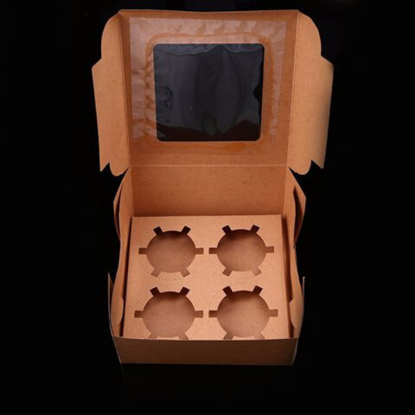 Hộp cupcake mở nắp 4 bánh màu nâu sẽ là món quà vô cùng xinh xắn và ý nghĩa nếu như bạn muốn dành tặng cupcake cho những người thân yêu đấy nhé! Đặc biệt, bên trong hộp đựng có bìa giấy cắt ô vừa vặn với đáy chiếc cupcake giúp bánh không bị xê dịch trong khi di chuyển.