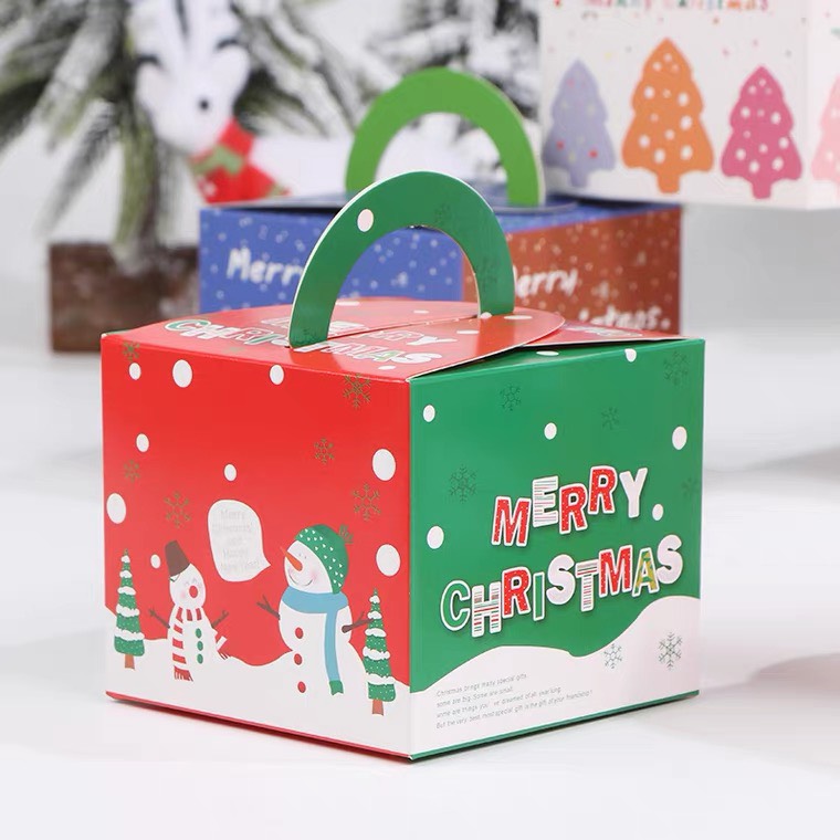 - Hộp thiết kế hình vuông, có quai xách chắc chắn, có thể sử dụng đựng quà tặng trong dịp lễ giáng sinh như bánh cookie, kẹo gậy, socola,....hoặc các món đồ lưu niệm khác.