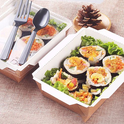 Hộp giấy chữ nhật kraft nắp trong có thể sử dụng với nhiều mục đich, có thể đựng nhiều loại thức ăn: bánh cuốn, nem chua rán, cơm, bún, mì xào, spagheti, thức ăn nhanh…
